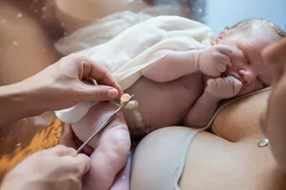 is, kan papa de navelstreng doorknippen en is het tijd om even