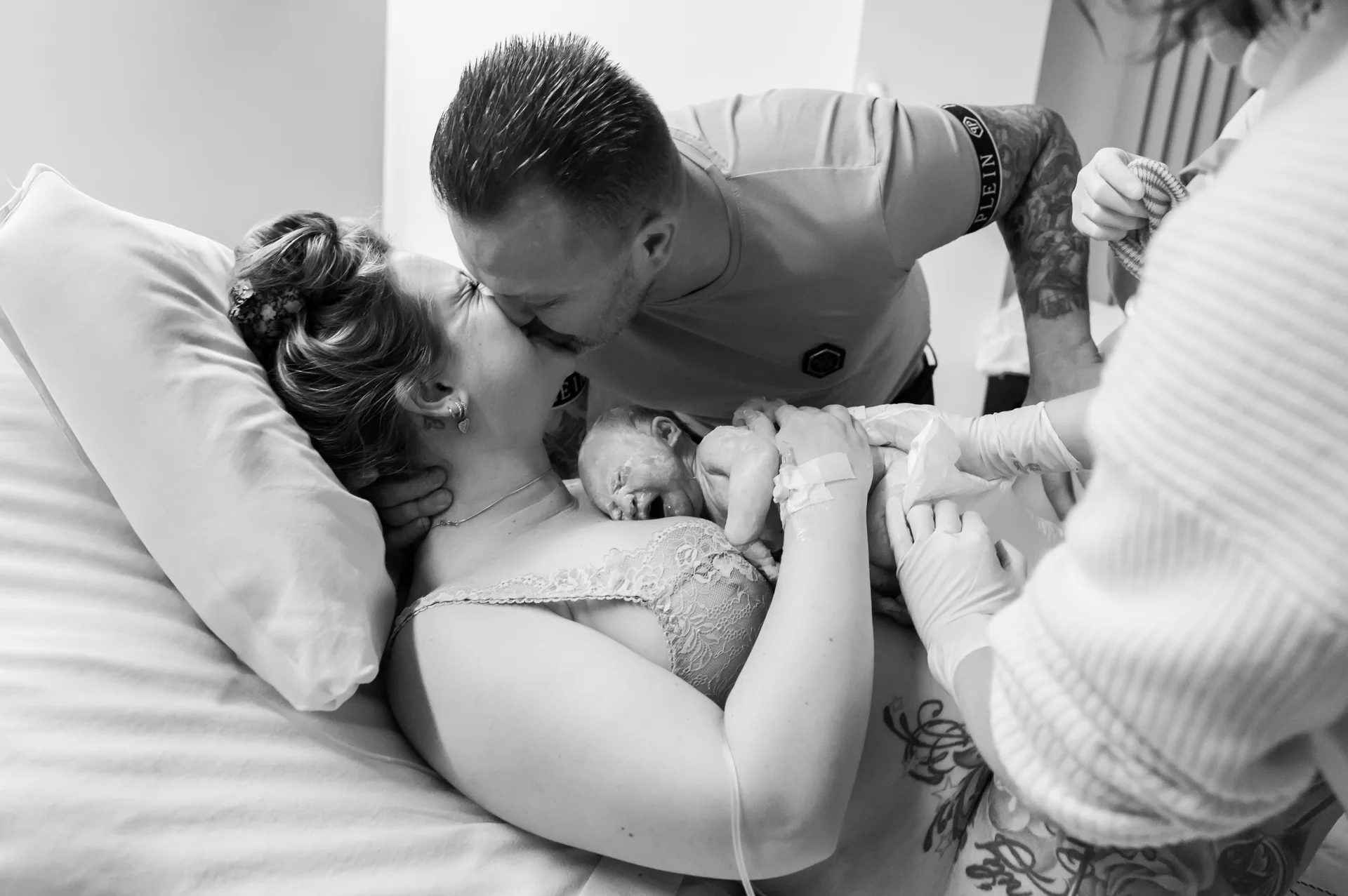 Vanaf het moment dat de arbeid startte ging alles heel snel. Je was zo krachtig tijdens de felle weeënstorm en voor je het wist was het moment al daar dat jullie zoontje geboren werd! Alsof hij het wist hoe belangrijk het voor je was, liet hij je onmiddellijk luidkeels horen dat alles in orde was. Dat eerste huiltje, voor elke ouder maar zeker voor jullie ongetwijfeld het mooiste geluid op aarde. Vanaf dat moment zag ik enkel nog maar een gelukszalige glimlach op je gezicht, dit was duidelijk liefde op het eerste gezicht... Na de liefde voor kleine Bella* in je hart, kan je nu ook eindelijk genieten van dat lieve kleine wondertje in je armen!
