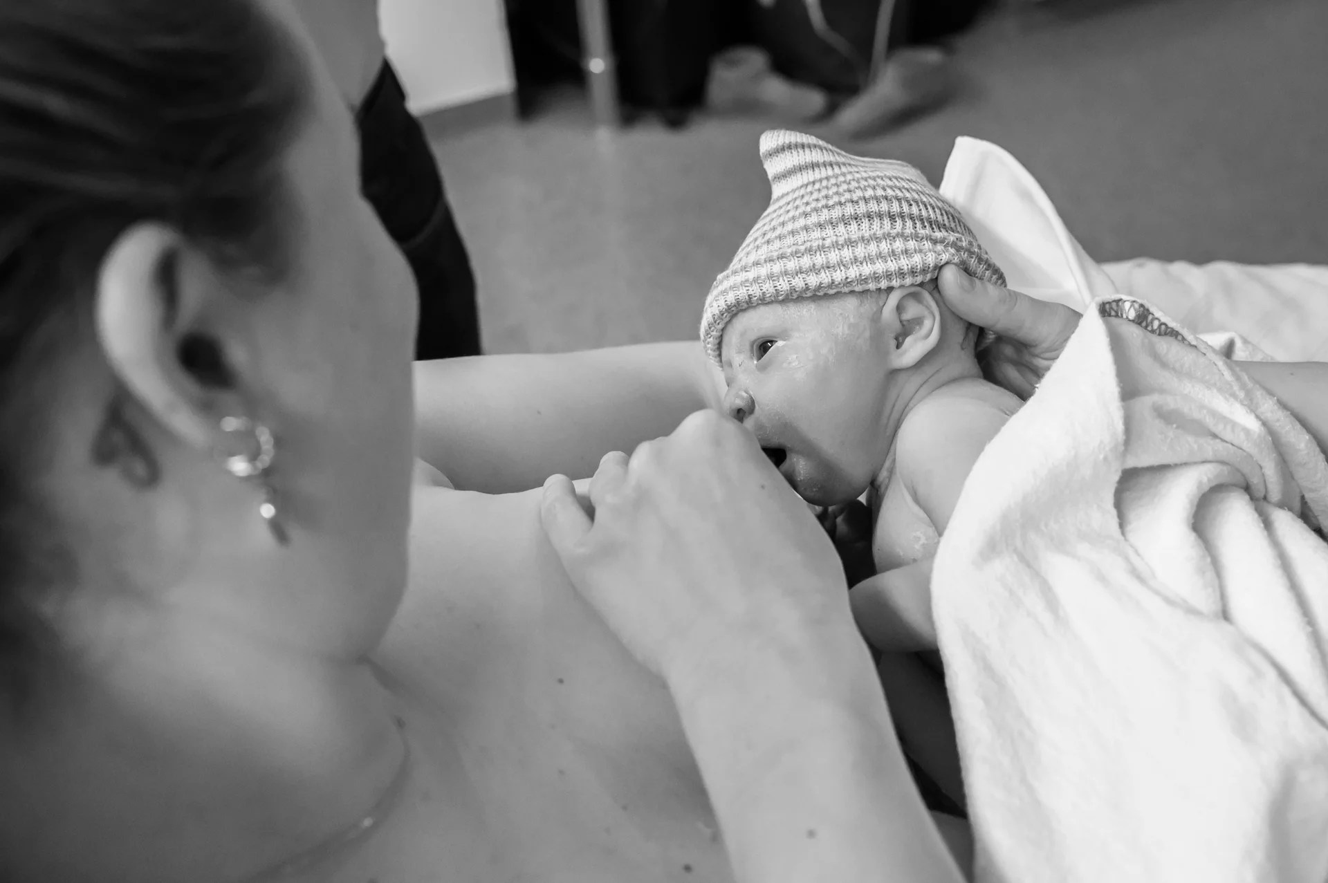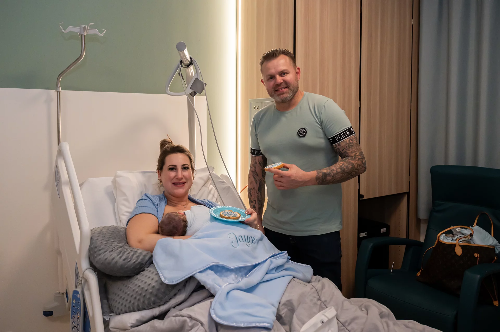 Nu is het eindelijk tijd voor mama en papa om te ontspannen, te genieten en volop te knuffelen. Het gouden uurtje is er eentje met veel bewondering en gevuld met heel veel liefde voor elkaar en voor lieve kleine Jayce! Na een uurtje is het tijd om je voor de eerste keer aan te leggen aan de borst. Met 37 weken moet je nog veel leren en weet je niet zo goed wat je moet met deze borst. Je sabbelt wat maar geniet vooral van het dicht bij mama zijn.